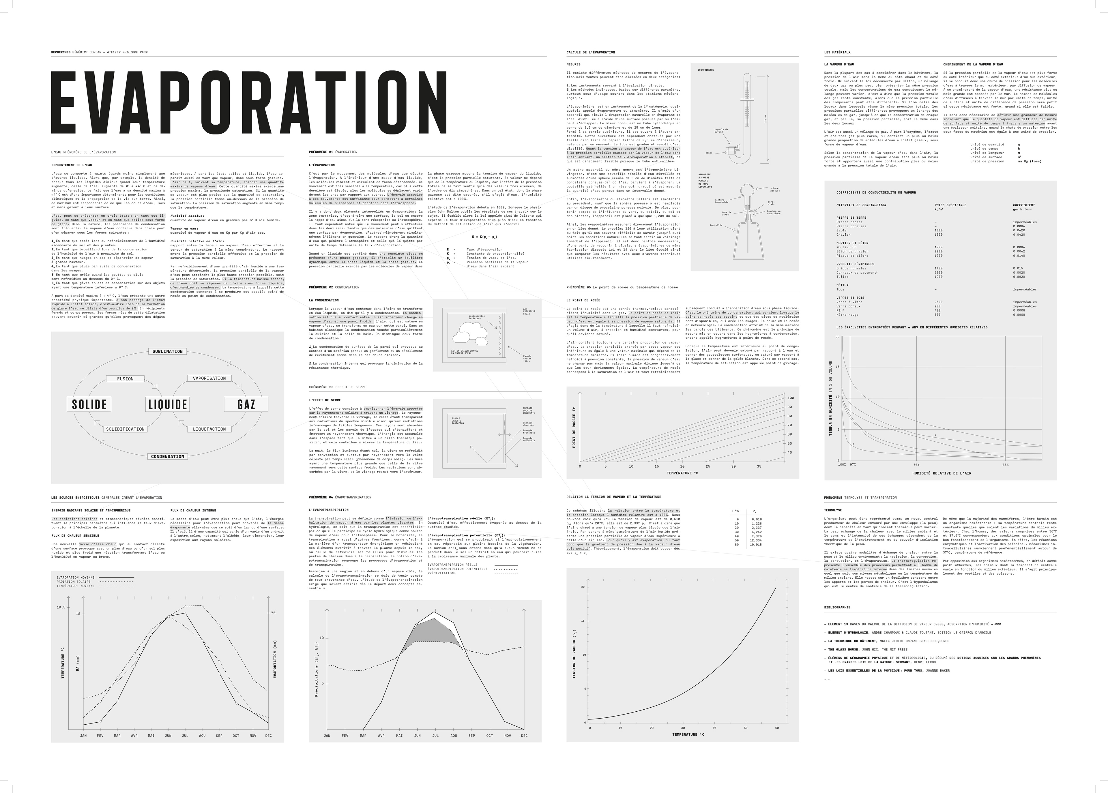 Evaporation, ventilation, hydration are thus some of the ways in which water appears in interior design. Vapour barriers and waterproofing are modes of water management. As for water, it has different states: liquid, drinking water, rainwater, waste water, or gaseous as humidity.