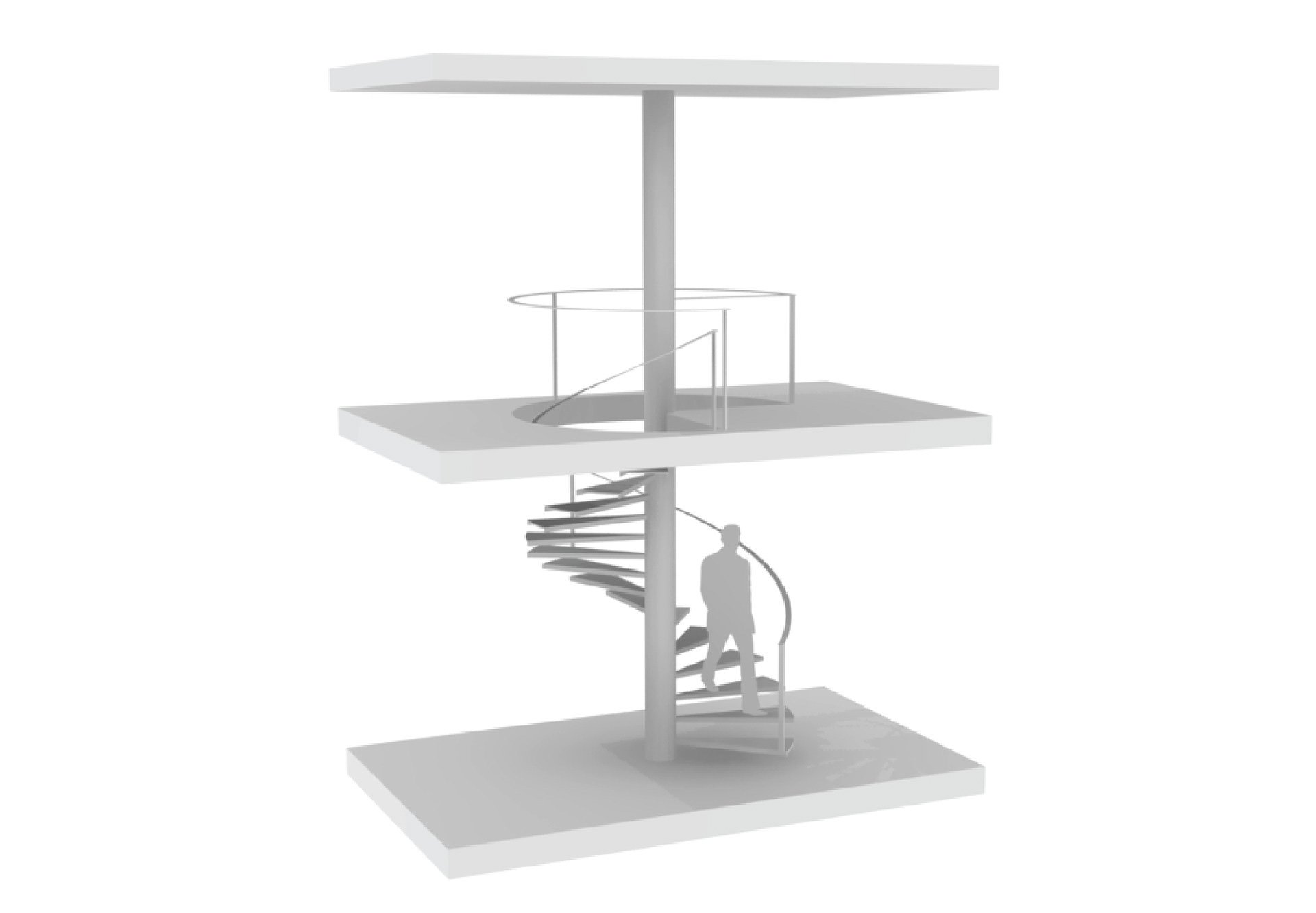 The staircase on which I decided to study is helical of a 240 cm diameter. I chose to work on stairs, which on a module unique forms stairs by overlapping between them.