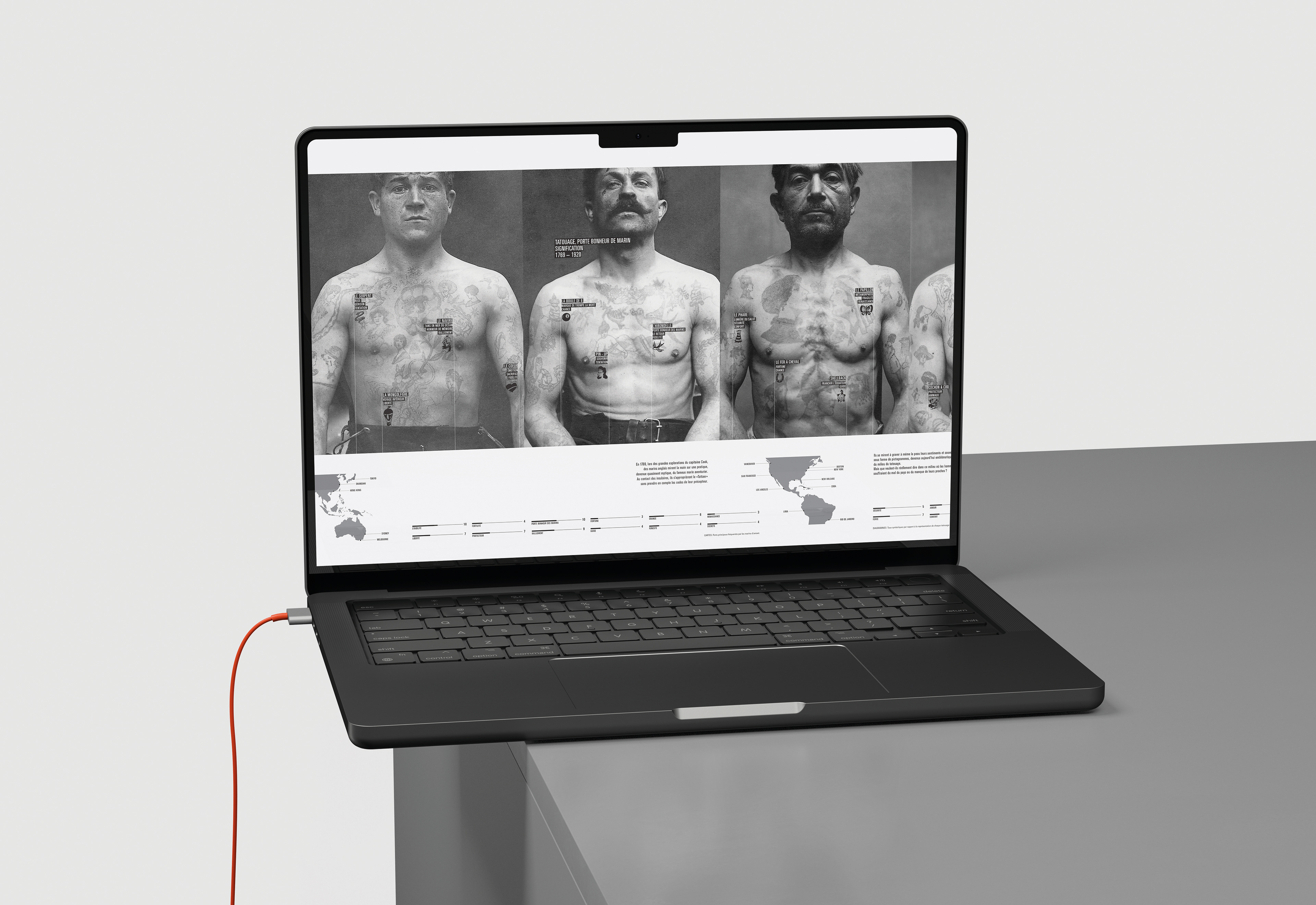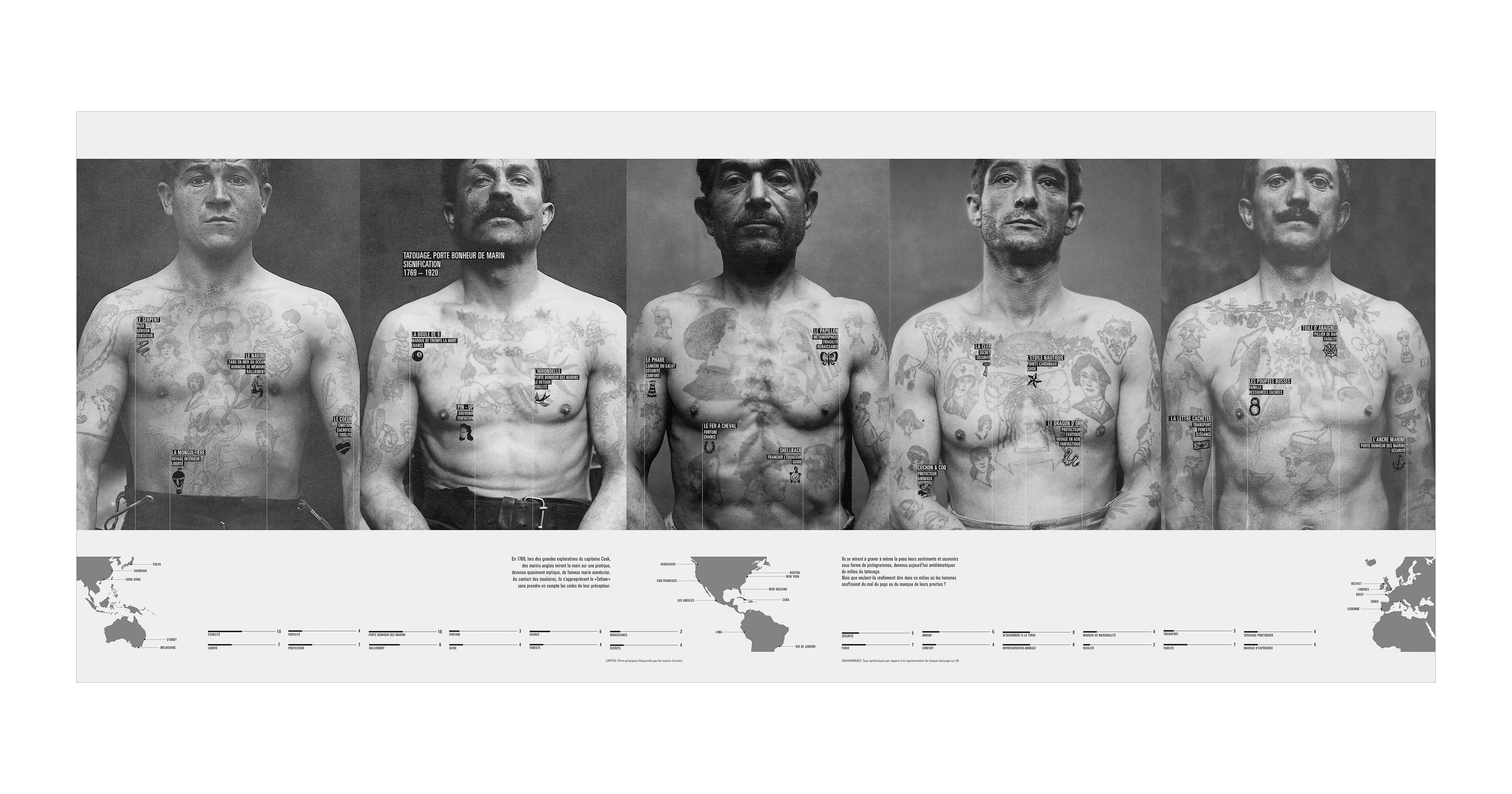 Transposition of an interdisciplinary project work conducted during the second year about nautical tattoo significance and interpretation.
